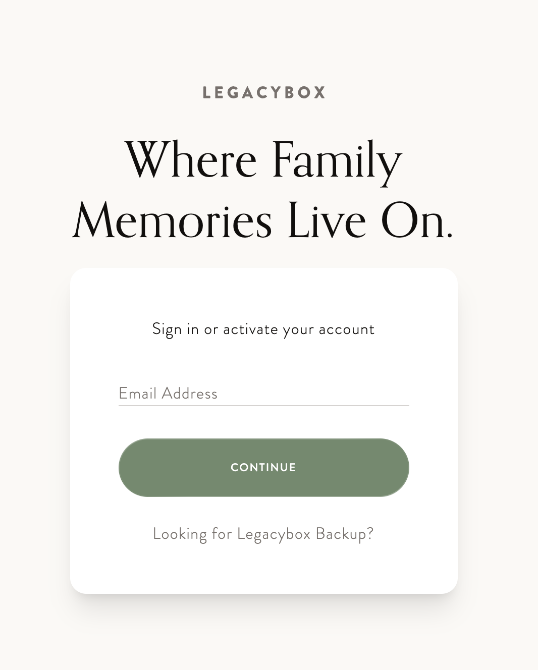 Tap the Activate button in the email, or if you can't find that email just visit https://cloud.legacybox.com/ and enter the same email address you used to place your order. You'll be show instructions to activate your account.
